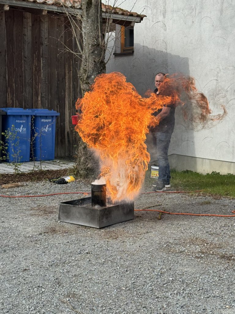 Ein besonderer Schwerpunkt lag auf dem richtigen Verhalten im Ernstfall. Unter fachkundiger Anleitung konnten wir verschiedene Feuerlöscher selbst ausprobieren und den Umgang damit praktisch üben.
